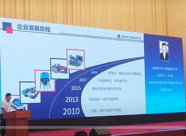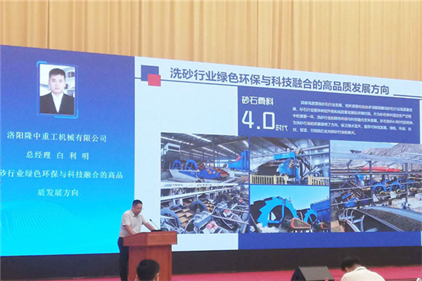 洛陽隆中重工機械有限公司總經理白利明作題為《洗砂行業綠色環保與科技融合的高品質發展方向》的主題