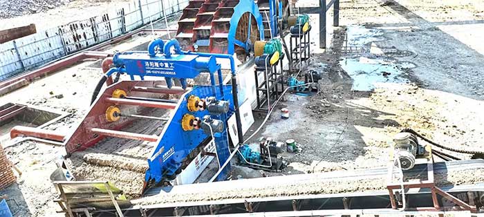 2、脫水篩篩下物料通過渣漿泵送至細砂回收裝置進行細砂回收,回收后的細砂通過傳送帶運至堆場;